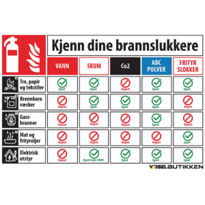 Det kan også være høyere, hvis for eksempel noe hindrer synsavstanden til brannskiltet. Brannskiltene burde også ha identifikasjonskilt over selve utstyret. Det vil gjøre det enklere og ta en rask beslutning om hvilket brannslukningsapparat man skal bruke.